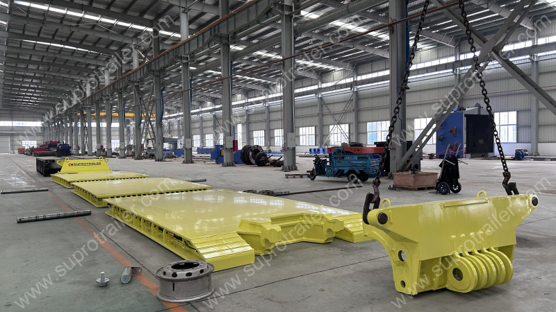 ❐With Supro Trailer, you no longer need to pay three times the price to purchase this type of drop deck bed from Germany. We believe that this showcase will fill you with confidence in Supro Trailer's technical strength and production capability. No matter how complex the tooling you wish to customize for your hydraulic modular trailer, Supro Trailer has the strength to meet your needs, making your heavy transport simple and efficient.