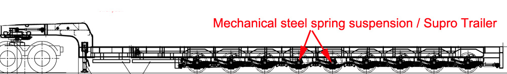 ❐A Supro Trailer é uma fabricante profissional de reboques de baixa altura especiais, e somos líderes na tecnologia de reboques de baixa altura de eixos múltiplos na China! A nossa empresa utiliza suspensão hidráulica, suspensão a ar e suspensão mecânica nos reboques de baixa altura de eixos múltiplos, e isso pode ser a sua opção. A suspensão hidráulica pode elevar cada eixo de forma independente, e a suspensão a ar possui uma altura ajustável de 100 mm para o reboque como um todo. Além disso, personalizamos uma viga telescópica do reboque de baixa altura de eixos múltiplos para ampliar a sua utilização.