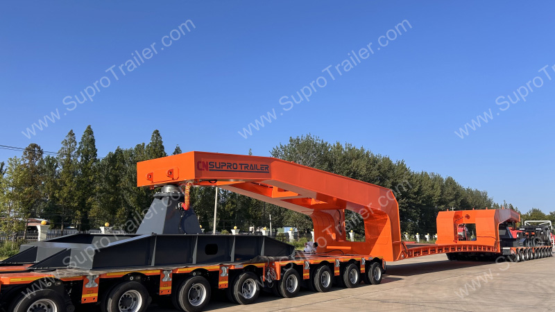 ❐ Transporte de transformador de 400 toneladas! Se você acha que usar pontes de viga tipo cesta tradicionais leva muito tempo para montagem e desmontagem, a Supro Trailer projetou uma ponte de viga de plataforma plana para você! O tempo de montagem é apenas um terço do tempo necessário para a ponte de viga tipo cesta, e o custo é apenas metade!